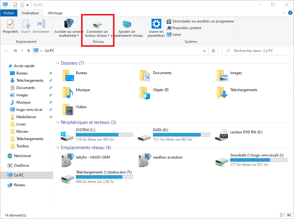 - Un nouveau lecteur réseau apparaît sous “Emplacements réseau”. Vous pouvez le renommer avec un clic droit > Renommer.